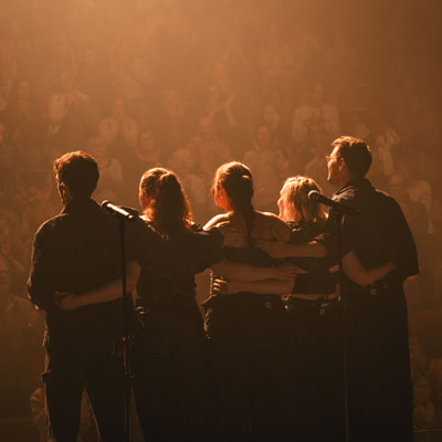 Pas un seul instrument, juste quatre voix et un beatboxer, mille nuances qui se rassemblent pour ne former qu’un univers.